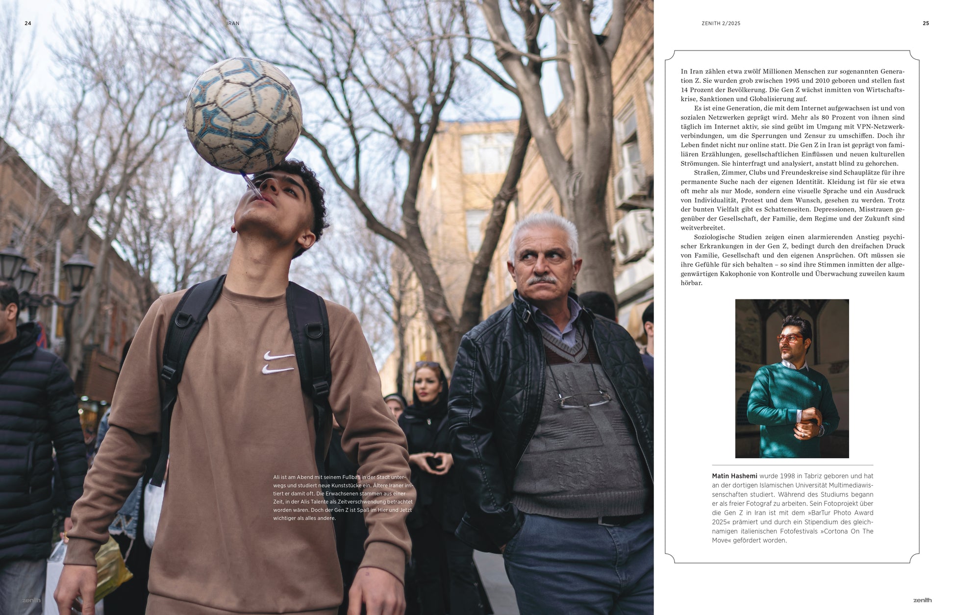Kann man den Nahen Osten auch anders betrachten als durch das Prisma eines ewigen Krisenherds, wo Konflikte par défault mit Gewalt behandelt werden? Als ein sich scheinbar ewig fortsetzendes Nullsummenspiel? Hier kommt vielleicht die Gen Z ins Spiel, die zu vielen Themen eine andere Einstellung vertreten soll als ihr vorausgehende Kohorten, wofür sie häufig kritisiert wird: Zu Arbeit und Moral, Geld, Technologie, Drogen, Religion, Sexualität, anderen Ethnien und Nationen. Die Gen Z im Nahen Osten hat dabei andere Kämpfe auszufechten als in Mitteleuropa, aber, wie dieses Heft zeigt, ist vieles davon spiegelbildlich. In dieser großen Reportagenausgabe berichten zenith-Autoren und -Fotografen nicht aus der geopolitischen Vogelperspektive, sondern aus dem Innenleben der Gesellschaften. Nicht immer, aber an vielen Stellen, steht dabei die Gen Z im Fokus.